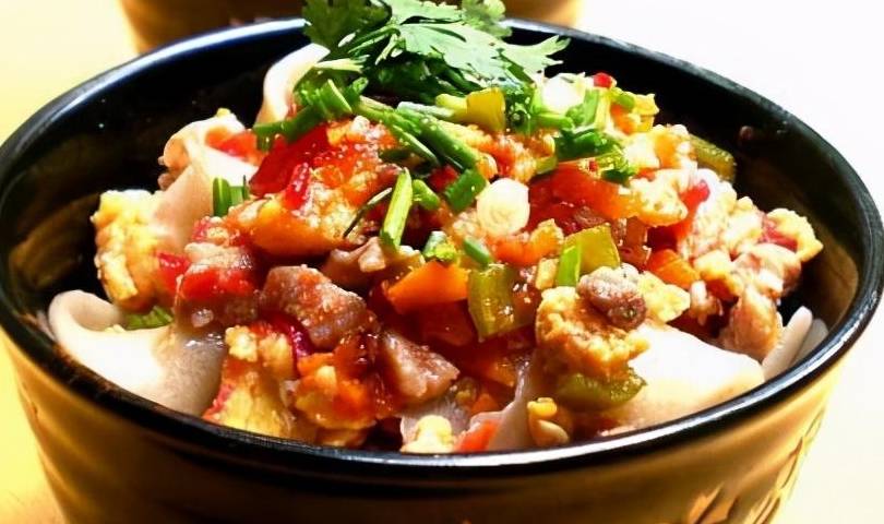 面与臊子分开盛放,妙就妙在这一碗上好的臊子汤,汤中配有黄花、木耳、油豆腐丁、西红柿、蒜苗、韭菜、葱花、肉丁等。一碗温汤细面条,吃时挑一筷头面条放入臊子汤中,来回摆动,让其充分沾上调味汁子。面薄筋光,油汪汤煎,酸香适口,有人赞"薄如纸,细如线,下到锅里莲花转,捞到碗里象条线,吃到嘴里光又绵。"
