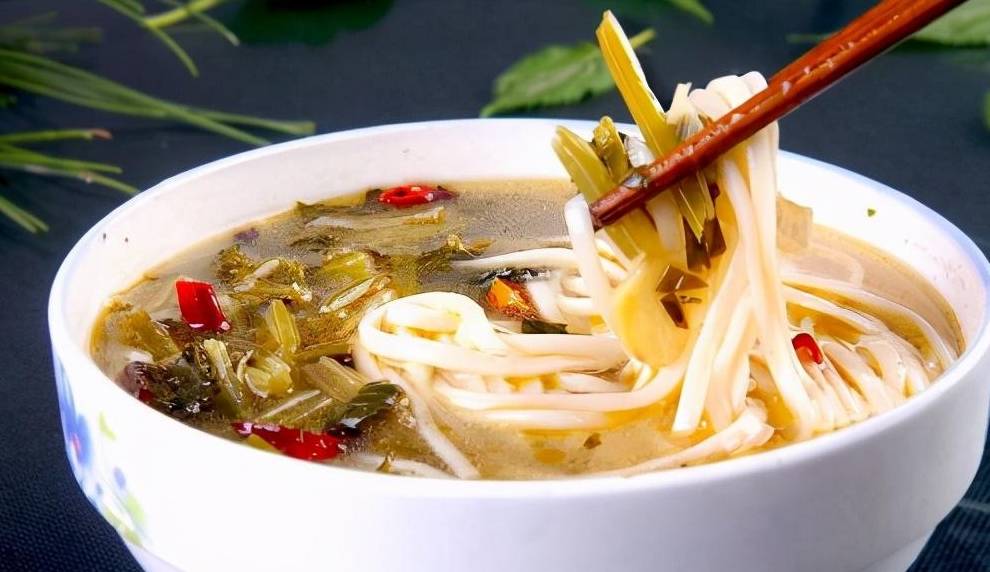 浆水面,相传该名是由汉高祖刘邦与丞相萧何在汉中所起,用时令青菜腌制出浆水,手擀细面,调入蒜辣子红油,令人口味大开,醒酒解晕,清酸爽口。汉中浆水面,其味酸、辣、清香,别具一格,浆水菜的菜以芥菜(花辣菜)为佳。关中的浆水面类似于酸汤面,是夏季常见小吃,浆水菜的菜多为芹菜。