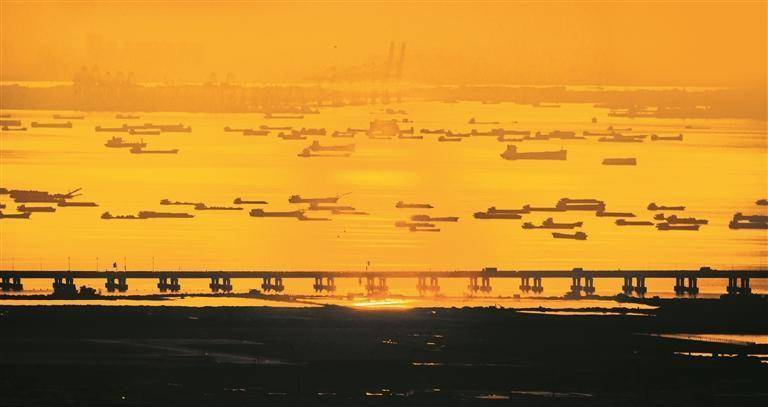 生活的感受并不容易察觉,融于底色的,早已成为人们生命的一部分。作品《璀璨茅洲河》《深中悬日》《晚风沉溺于橘色的海》等作品,不约而同将光影与夜色、落日相映衬,让我们看到了宝安的轻盈与梦幻之美。