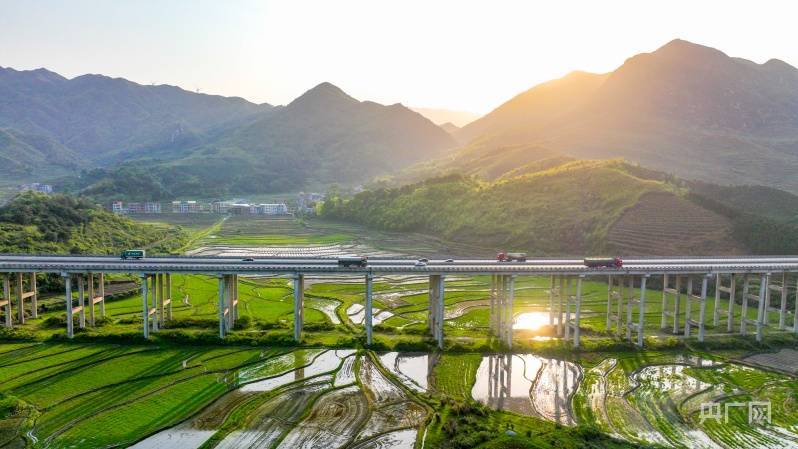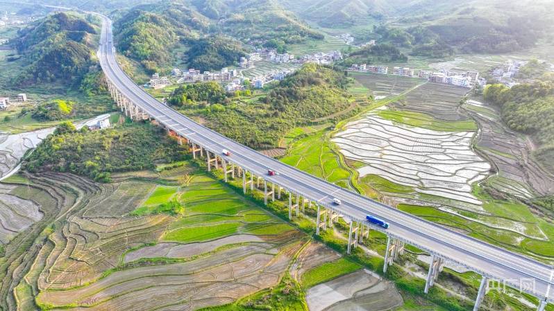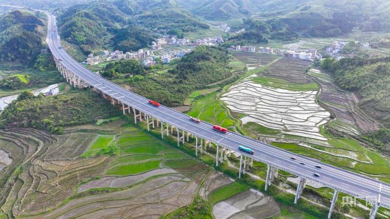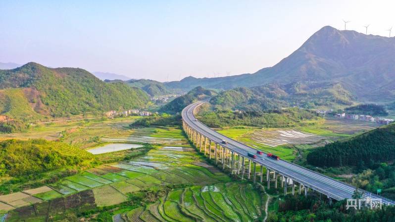央广网衡阳4月10日消息(记者唐丽丽 实习生孙帆 通讯员周秀鱼春)4月8日,湖南衡阳常宁市庙前镇泉井村,青山、绿树、田园、民居和运输繁忙的公路相互映衬,构成一幅美丽的春日乡村画卷。