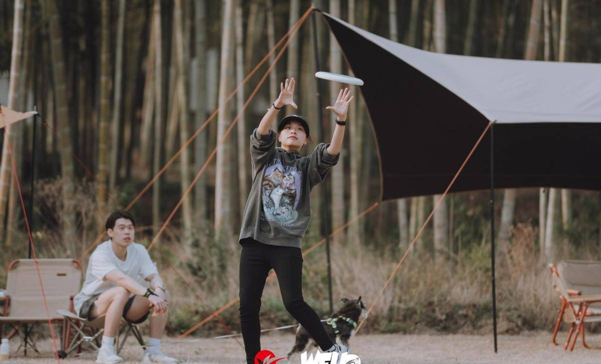 我飞露营地作为主场阵地,为飞盘比赛提供了宽阔的大草坪场地以及周到的服务。青山绿水的自然环境、幽静美丽的竹林营地、丰富有趣的户外游戏吸引了众多小伙伴前来打卡拍照。