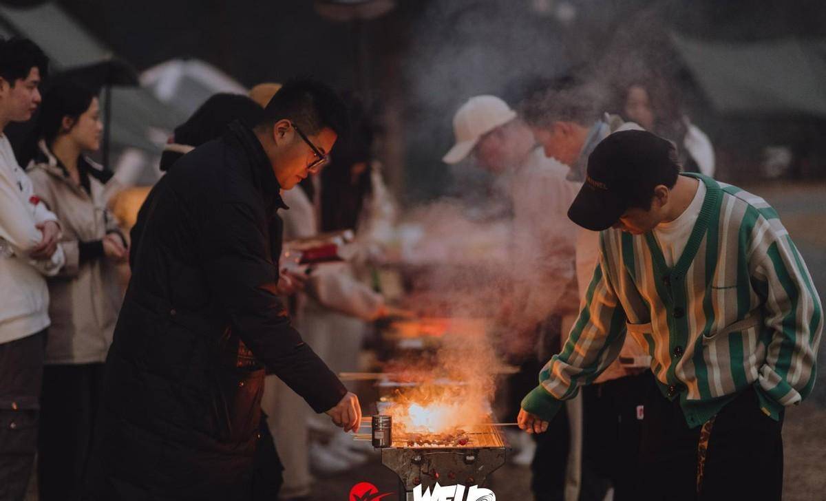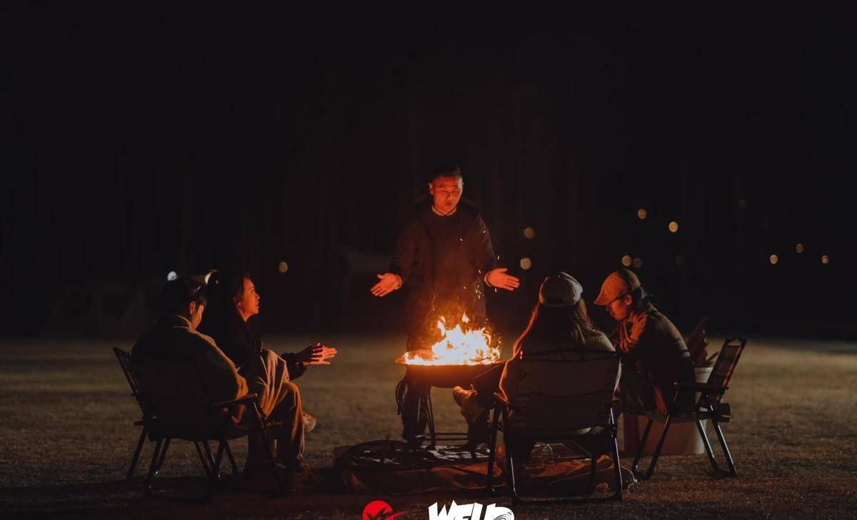 夜幕降临,大家聚在一起烧烤,围着篝火起舞,看夜空繁星点点,在我飞露营地度过完美的一天。