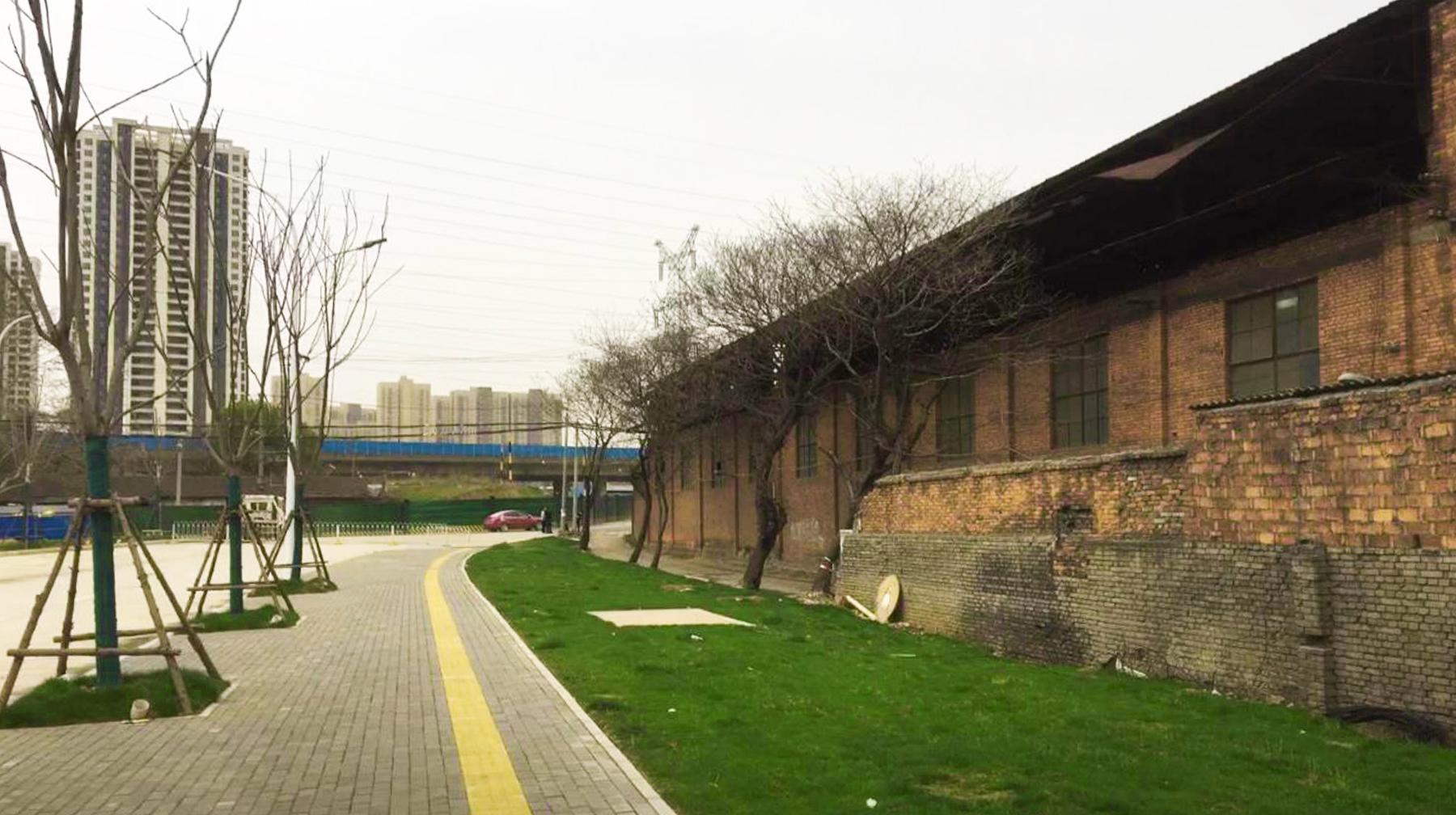 沿着主路往南走,路边的老建筑突兀出现,那是一栋大规格的裙楼,类似80年代的乡镇仓库。建筑主体只有一层,但因为是复式结构,所以靠近屋檐的外墙上有开着窗户,木质窗楞早就变成了污秽的黑色。建筑墙壁是红砖,屋顶是黑瓦,整体成色非常老旧;虽如此,但墙体的坚实程度很高,没有丝毫缝隙和沉降,在一排行道树映衬下,更加显出仓库的陈旧风格。