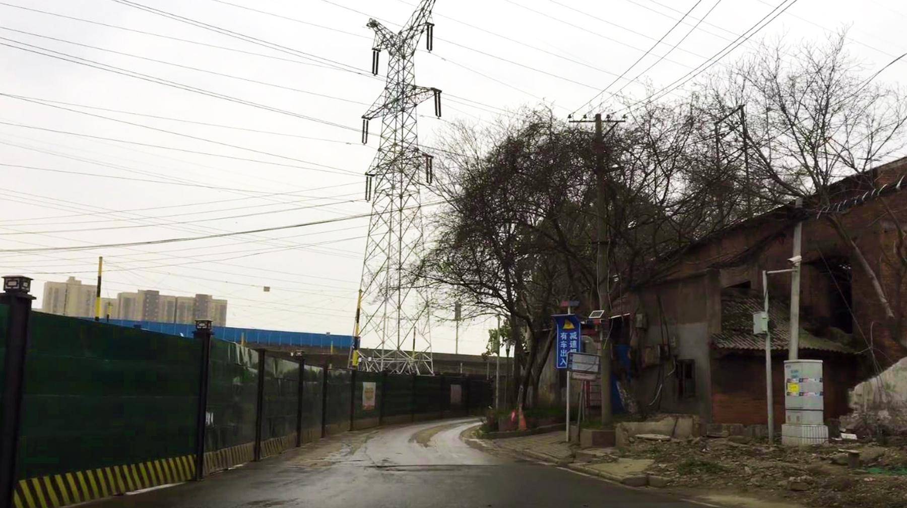 走到武东村毗邻的区域,远远看到的是一派繁忙的施工场地。施工的主要区域是附近的拆迁还建地,不知道是就近还建还是异地重建,但现场的商品房大楼密度可不小。远处是绵延的建筑楼体,塔吊与施工车来来回回,蓝色建筑挡板相互交叉,好在刷新清洗频率高,即便早上来看也是新的。偶尔还能看到稀疏的电线杆和电线,落在稀疏的行道树之间,破败的氛围一眼瞅出。这样的环境,已经没有居民生活,相关区域的人早就被清空了。