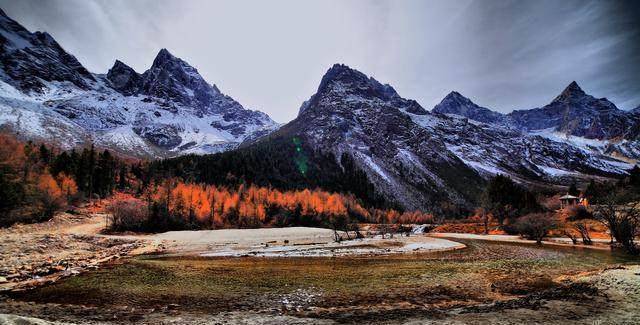 四姑娘山以雄峻挺拔闻名,山体陡峭,直指蓝天,冰雪覆盖,银光照人。山麓森林茂密,绿草如茵,清澈的溪流潺潺不绝,宛如一派秀美的南欧风光,人称“东方的阿尔卑斯”。