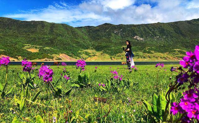 沿着弯弯曲曲的山路来到文海村,映入眼帘的便是文海。文海不是海,是一个很大的天然湖泊。这是一个季节性的湖泊,每年玉龙雪山的冰雪融化而形成。在雨季和旱季的时候,文海的面积差距十分之大,有5倍之多。如果你在夏天到达文海的时候,刚好可以看到文海最美的季节。