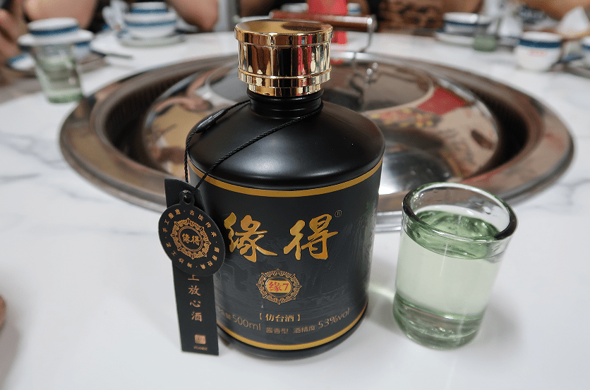 缘得酒是一种酱香型白酒,产于贵州省茅台镇,离著名茅台酒厂不远。此外,茅台的大曲酱酒工艺也用于酿造工艺。