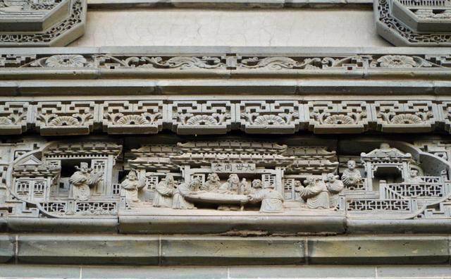 另一座则是九世同堂。老宅建于1901年,因其门头上的九世同堂砖雕而出名。不到1寸的砖胚上,各种造型的雕刻栩栩如生,其雕刻技艺之精湛,真的是世所罕见。
