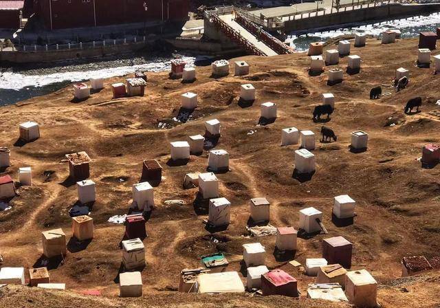 在山脚下,有很多像方块盒子一样的建筑,这是觉姆们百日修行所住的地方。