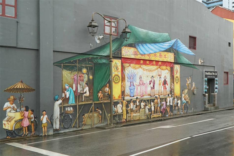 牛车水如今有个五脚基节,届时搞各种旧时的民俗活动。街巷里还有风俗壁画,真人一般大小,让你记住此地曾是华人创业的基地,是百年前的“清明上河图”。