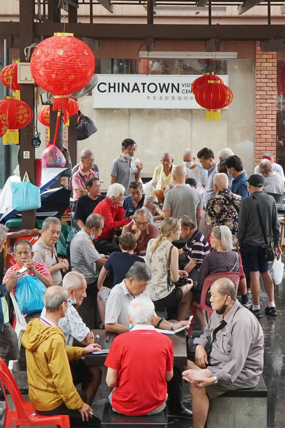 大厦一侧有大群乐龄(新加坡对60岁以上的老人称谓)老人会友打牌,与国内类似,他们不在意游客投去的各色眼神。