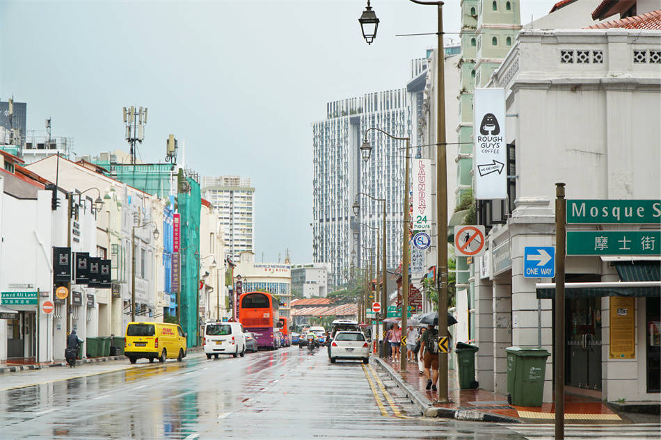 牛车水是三个街区中范围最大的,如果你从外围进入,你看到的五脚基多为高楼,不像甘榜格南和小印度,全是二、三层楼的红瓦房。