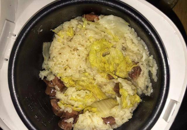 洗菜淘米,然后把菜加入到电饭煲之内,加点油和酱油,一锅大乱炖便出炉了。不过,对于不会做饭的我来说,第一次还是失败了,水加多了,饭有点像粥。
