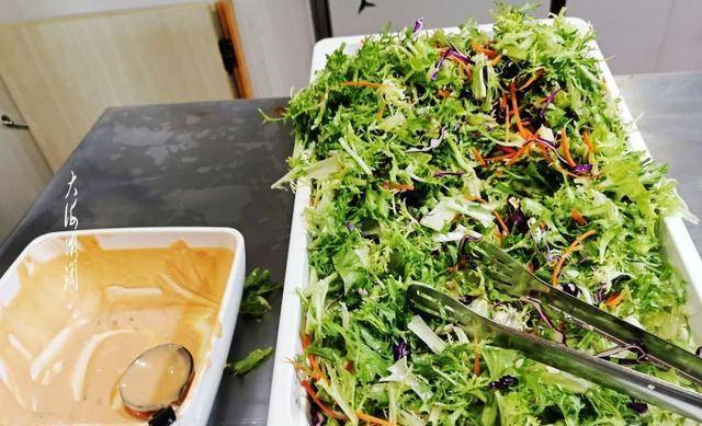 第六道:蔬菜沙拉。这道菜几乎每顿都有,只是食材上有差别,很清爽,非常受欢迎的一道菜,尤其适合大热天,超级爽口开胃。