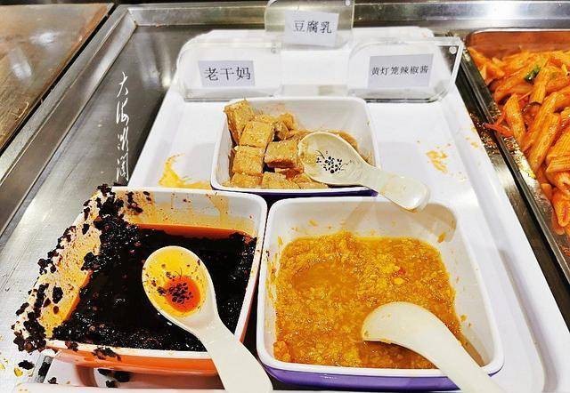 各种小酱料,老干妈、豆腐乳和黄灯笼辣椒酱。