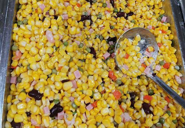 第二道:炒甜玉米粒。这道菜我很喜欢,自己在家也常做,既可以当主食,也可以当菜吃,口味不咸,甜甜的嫩玉米粒很好吃。