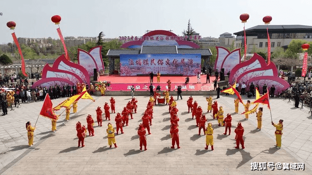 2023年4月9日温塘镇归咏街盛况空前,来自全县二十多个村的非遗民俗文艺演出将在这条大街上展演。今天前来参加文化展演的节目有军乐队、舞狮舞龙、温塘村、焦家庄武会、尤家庄、焦家坡高跷、北马冢拉花表演,还有来温塘镇周边村的文艺表演。