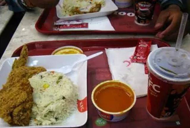 小编估计中国小伙应该是用勺子吃了饭,不加咖喱,炸鸡要么不吃,要么就直接用手吃。看来轻易不能随便去印度的肯德基吃饭,若是想要去吃就得提前备好餐具或者是手套。