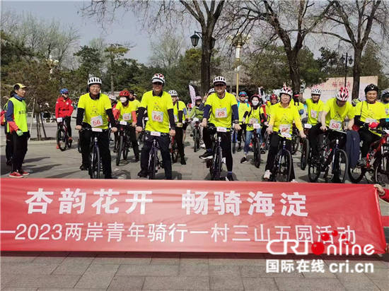 国际在线消息(记者 马晓叶):4月9日,北京市海淀区举办了“杏韵花开 畅骑海淀——2023两岸青年骑行一村三山五园”活动。海淀区青联委员、台青台生、台商代表等两岸青年及嘉宾70多人参加了骑行。