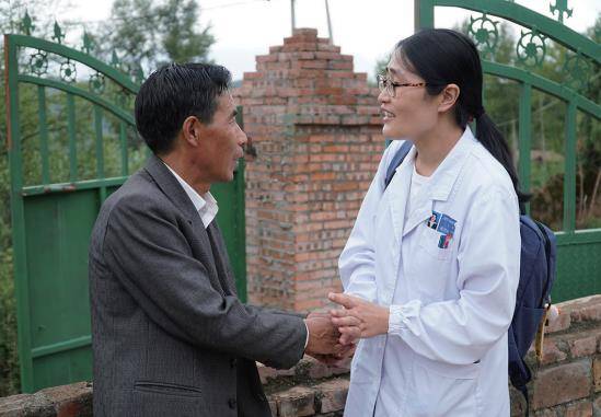 南京来的医生张月玲(右)入户走访并与患者家属交谈 张子琪 摄