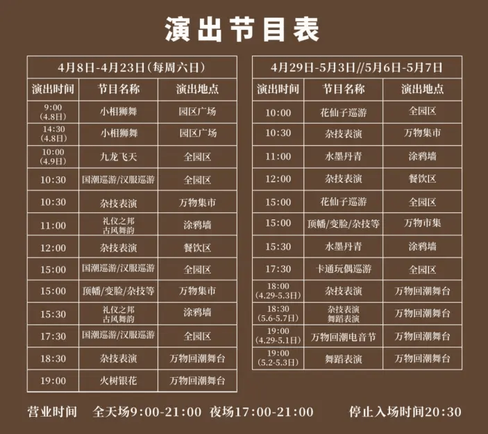聆听历史的声音、品尝封丘美食、观看非遗表演,进一步打响封丘县“全国休闲农业与乡村旅游示范县”品牌,擦亮封丘黄河文化名片底色,以花漾国潮为主旨在黄河之滨呈现一系列自然风光之美、万物回潮之兴、展现封丘文化特色、结合园内布陈的国潮电音节、沉浸式夜游体验等为主题的观光旅游季活动。
