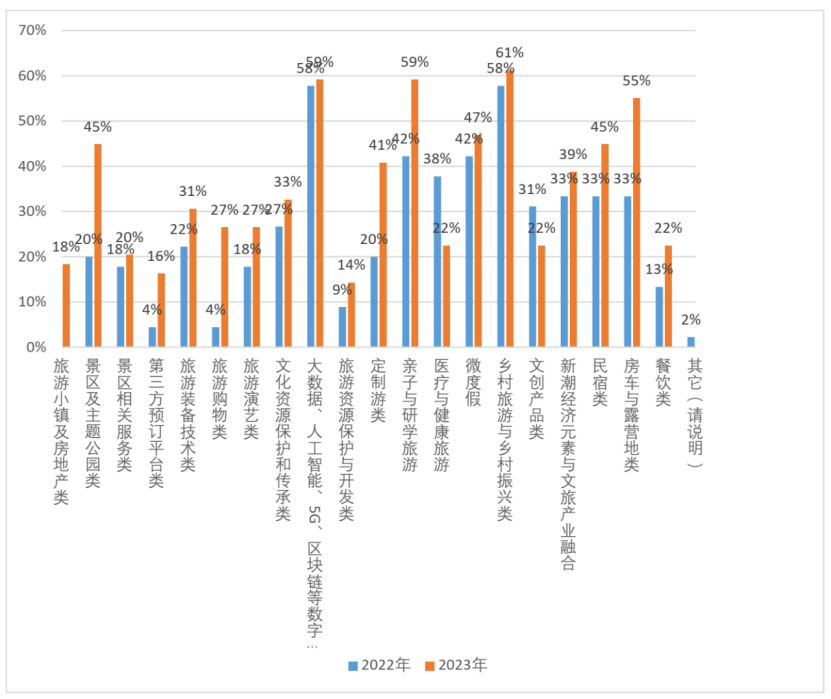 图2 2022年与2023年文旅双创业态与产品集中领域的预期分析对此