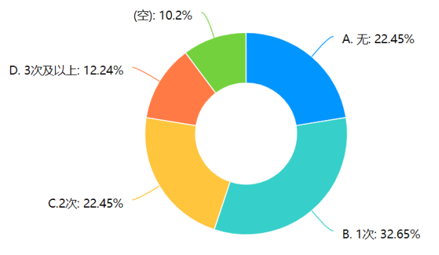 32.65%的创业者在此之前有过一次创业经历,有过两次创业的创业者22.45%,三次及以上的创业者占12.24%,没有过创业经历的占22.45%。