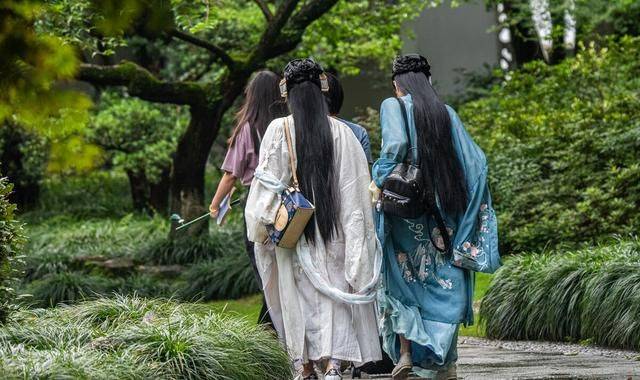 母女两人在步行街漫步,手摇着团扇,穿着一袭艳丽的古风长袍,步态轻盈如欢快的小兔子。恍如隔世,感觉很美好。