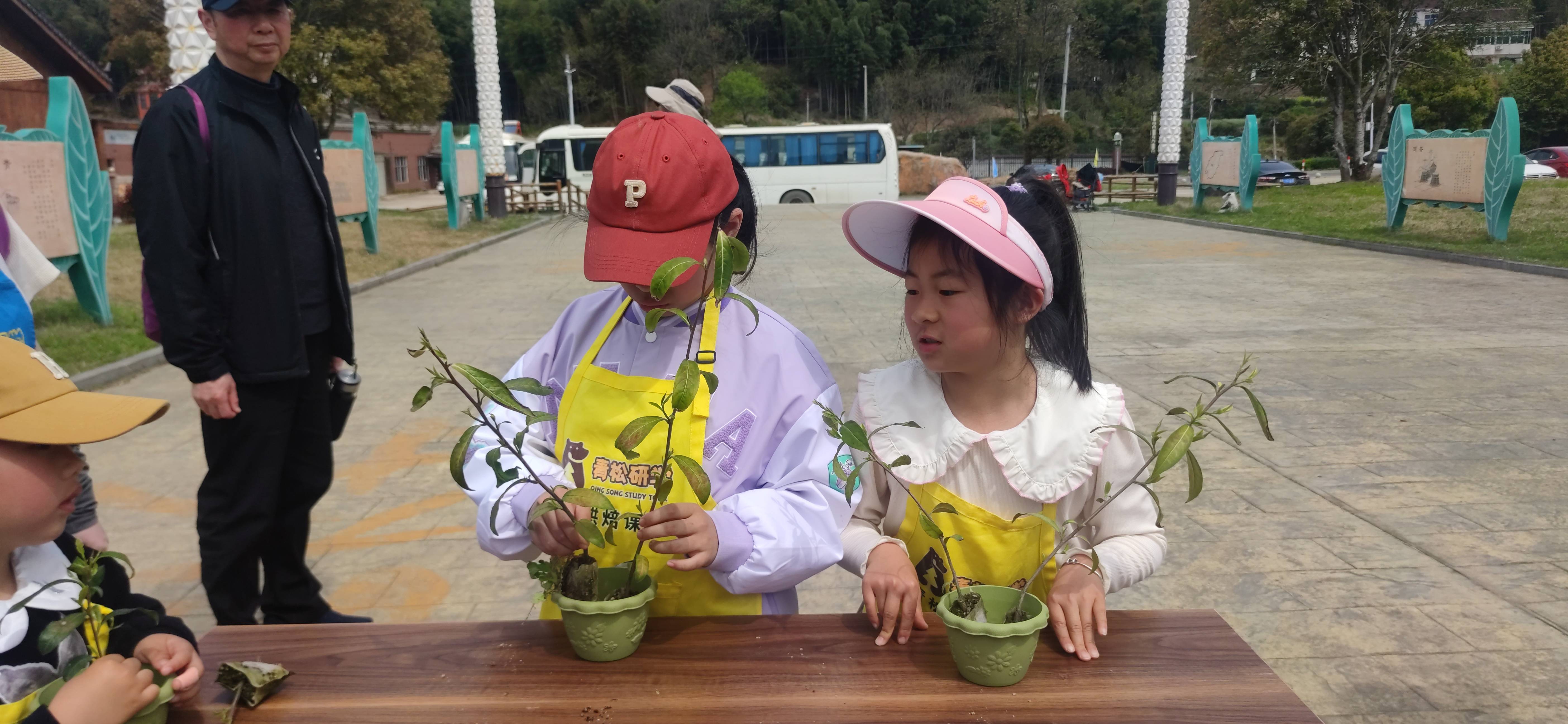 此次亲子茶文化体验游共有四个环节,分别为茶苗种植教学、现场采茶实践、茶馆学习茶艺和现场烹炒茶叶。在河棚镇茶文化主题公园的标志建筑——“大茶壶”下,专业的老师为小朋友们提供现场的茶苗种植指导,小朋友将发到手中的茶苗种到自己的小盆里,并学习着为其松土、浇水、护苗,在家长们的配合下完成了自己精美的盆栽作品。