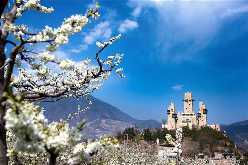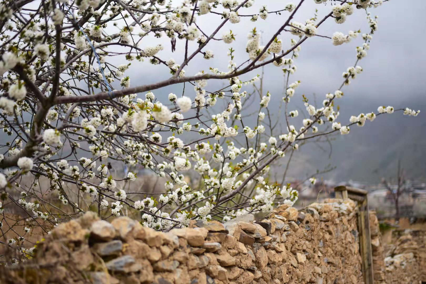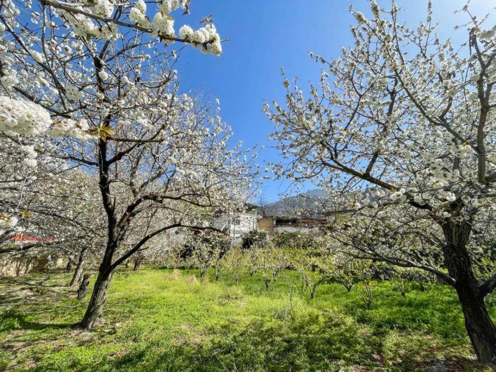 增头寨因海拔原因,这里的李花、车厘子花盛开于每年四月,如今正在枝头绽放,正是观赏最佳时期。一路山间小道,古寨之间满是樱桃花、李花盛开的迹象,置身白色花海中,奇美无比。