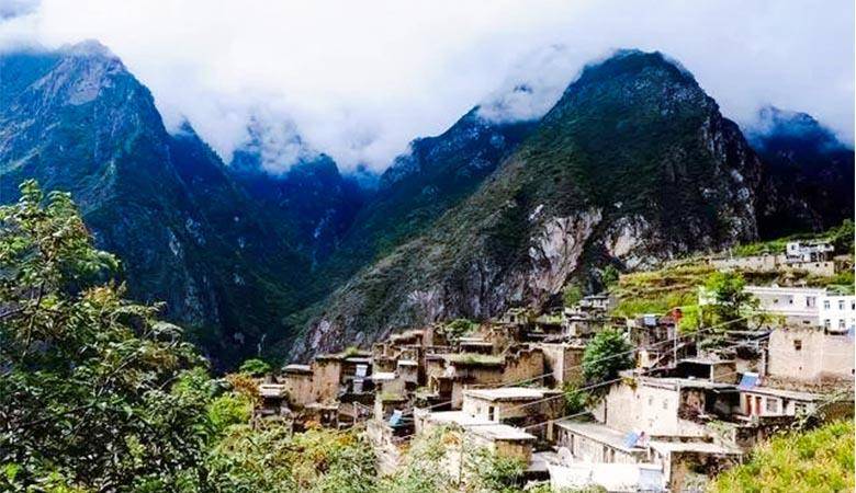 整个寨子由上寨、小寨、下寨合而为一,构筑在大山深处的一片开阔斜坡上。增头羌寨分上寨中寨下寨小寨四个羌族部落和千年众人合抱古树。