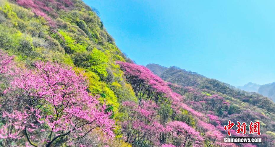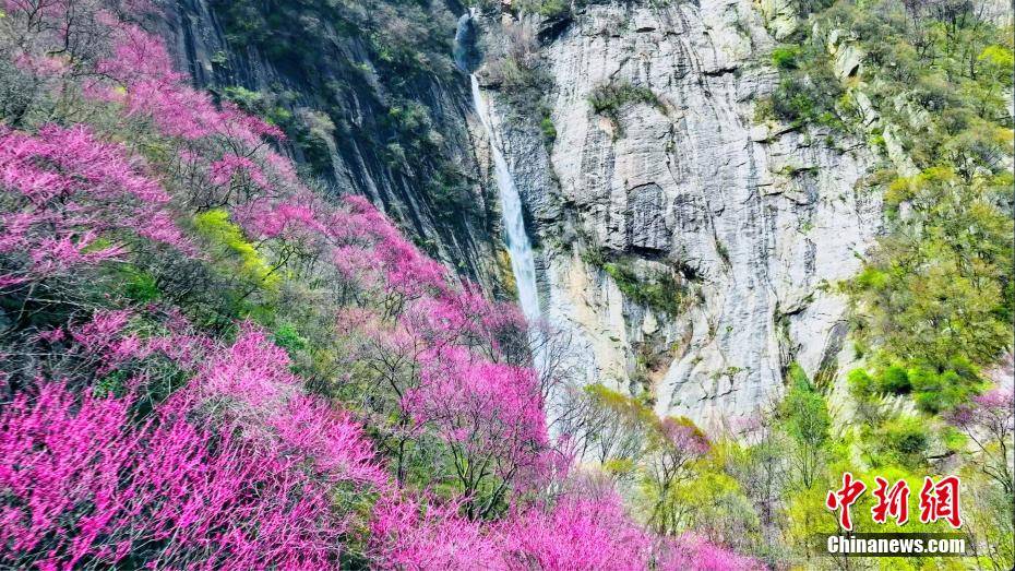 近日,随着气温回升,陕西太平国家森林公园内万亩紫荆花盛开,紫荆花与山间飞瀑“同框”,美不胜收。