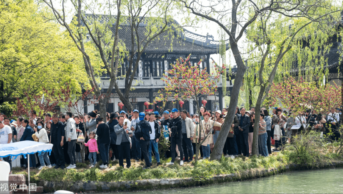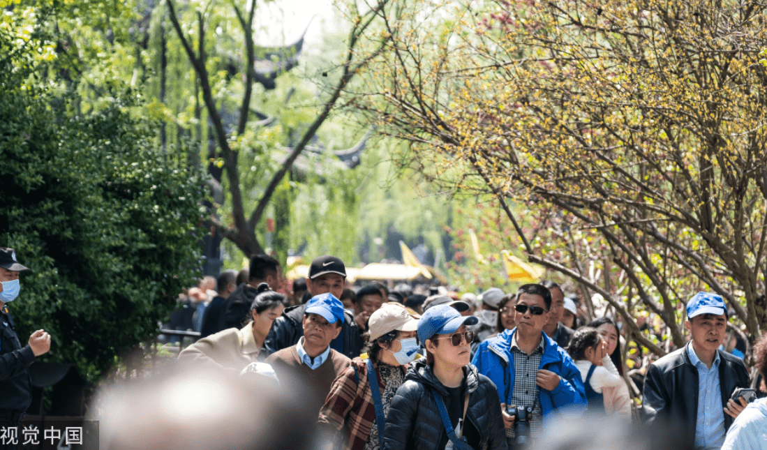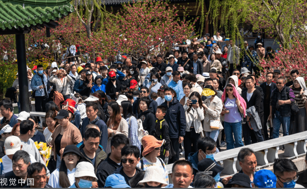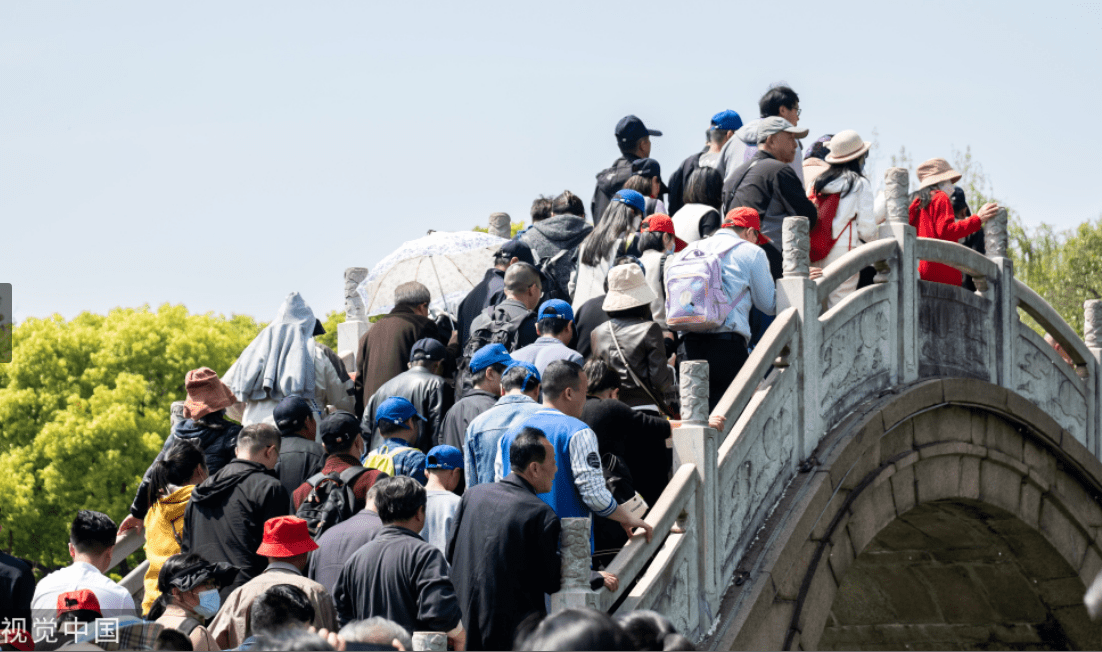 4月9日,江苏扬州,瘦西湖二十四桥景区挤爆的人群,烟花三月下扬州,在这美好的日子,越来越多的游客到扬州来游玩。
