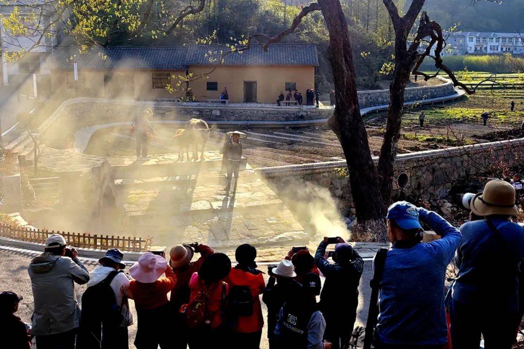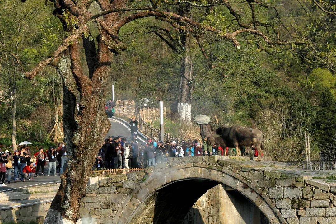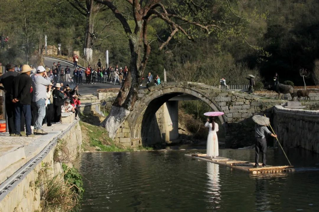 农夫牵牛桥上过、采茶姐妹结伴忙、竹筏纸伞和姑娘……春天的道士冲,人景交融织就一幅生动的田园画卷。上海的游客们被这幅画卷勾起浓浓乡愁,纷纷掏出相机用光影记录下大别山和谐融洽的乡村美景。