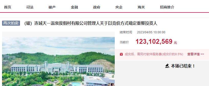 后来,连城天一温泉度假村有限公司公开招募重整投资人,经过三次降价进行公开竞拍都是以流拍而告终。直得4月5日,清明节这一天,第五次公开竞拍重整投资人,才成功迎来新的投资人接手。第五次公开竞拍,起拍价降到了1.231亿元,相比于第一次起拍价,少了约1.1733亿元。最终有一个人报名竞拍,以起拍价成为了连城天一温泉度假村有限公司新的投资人。