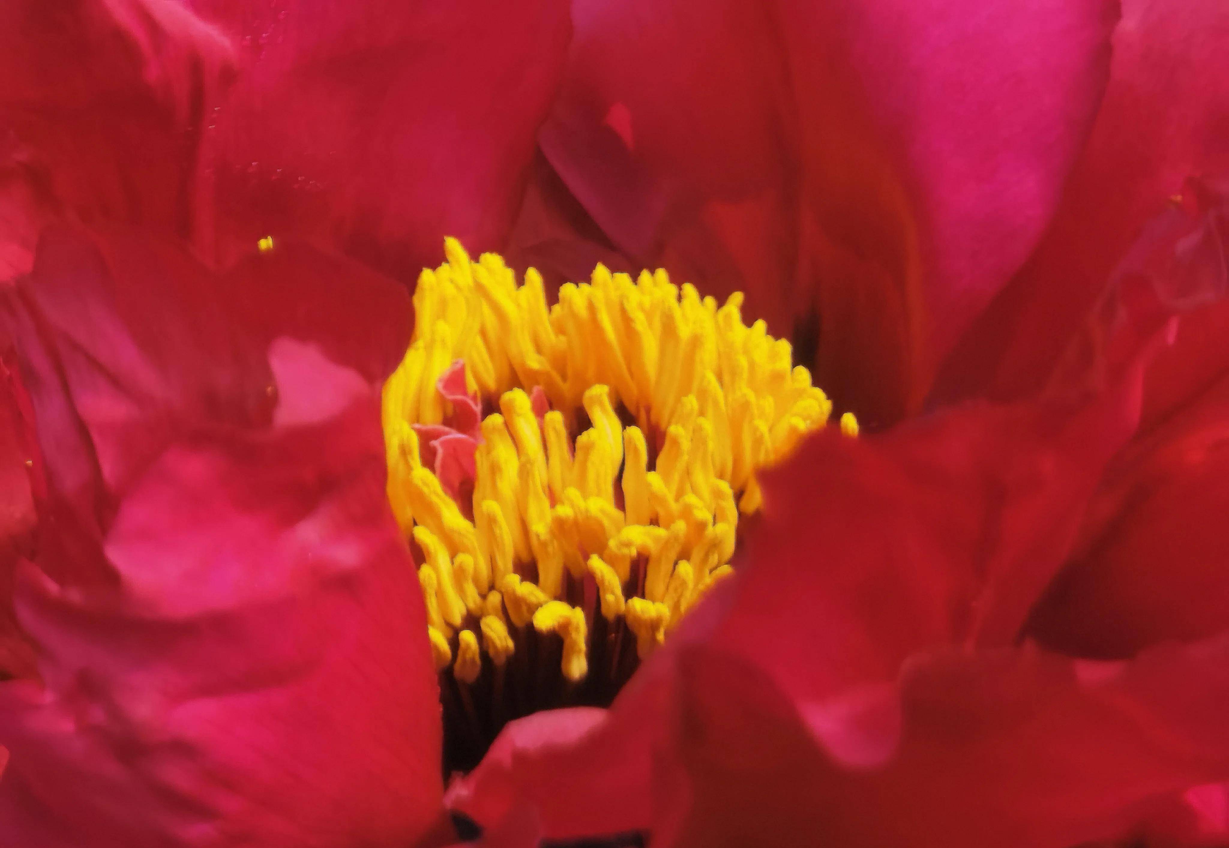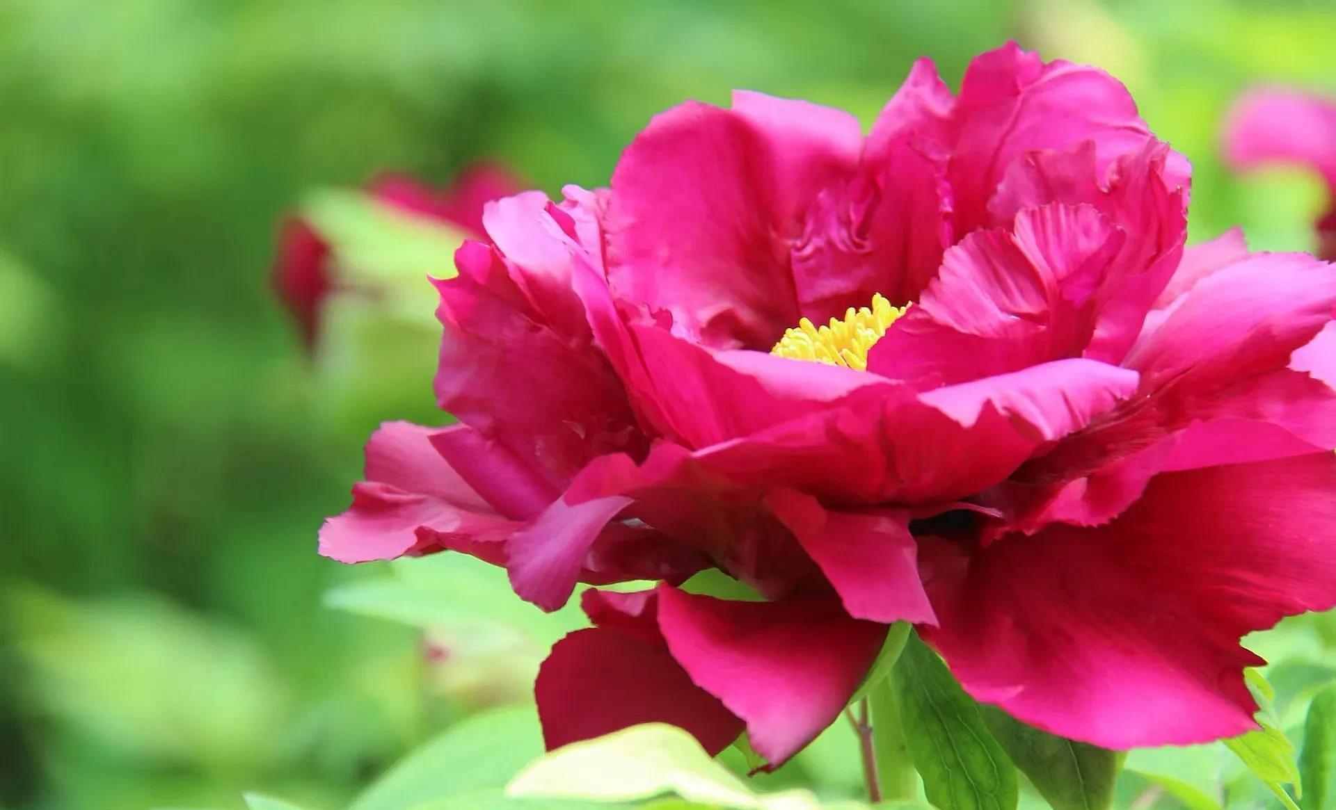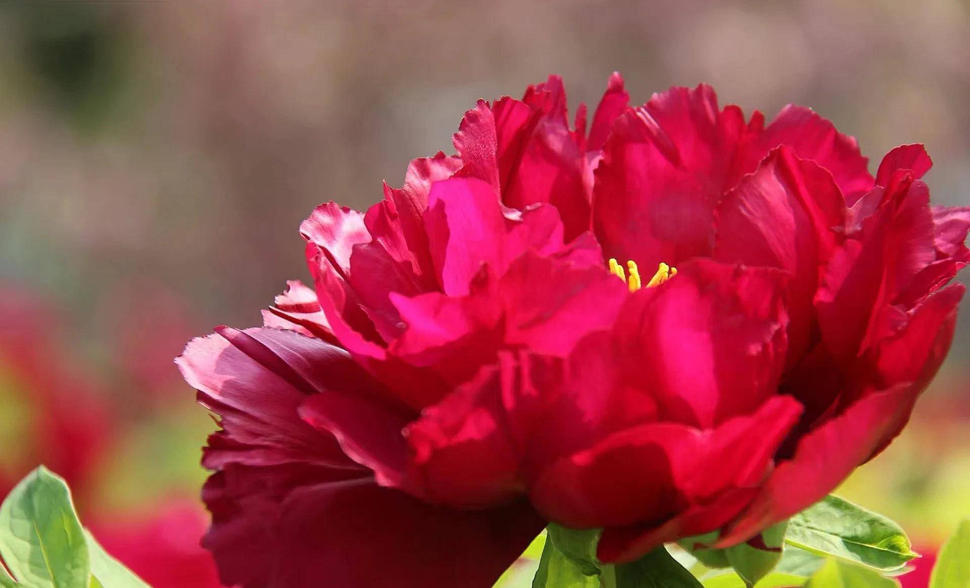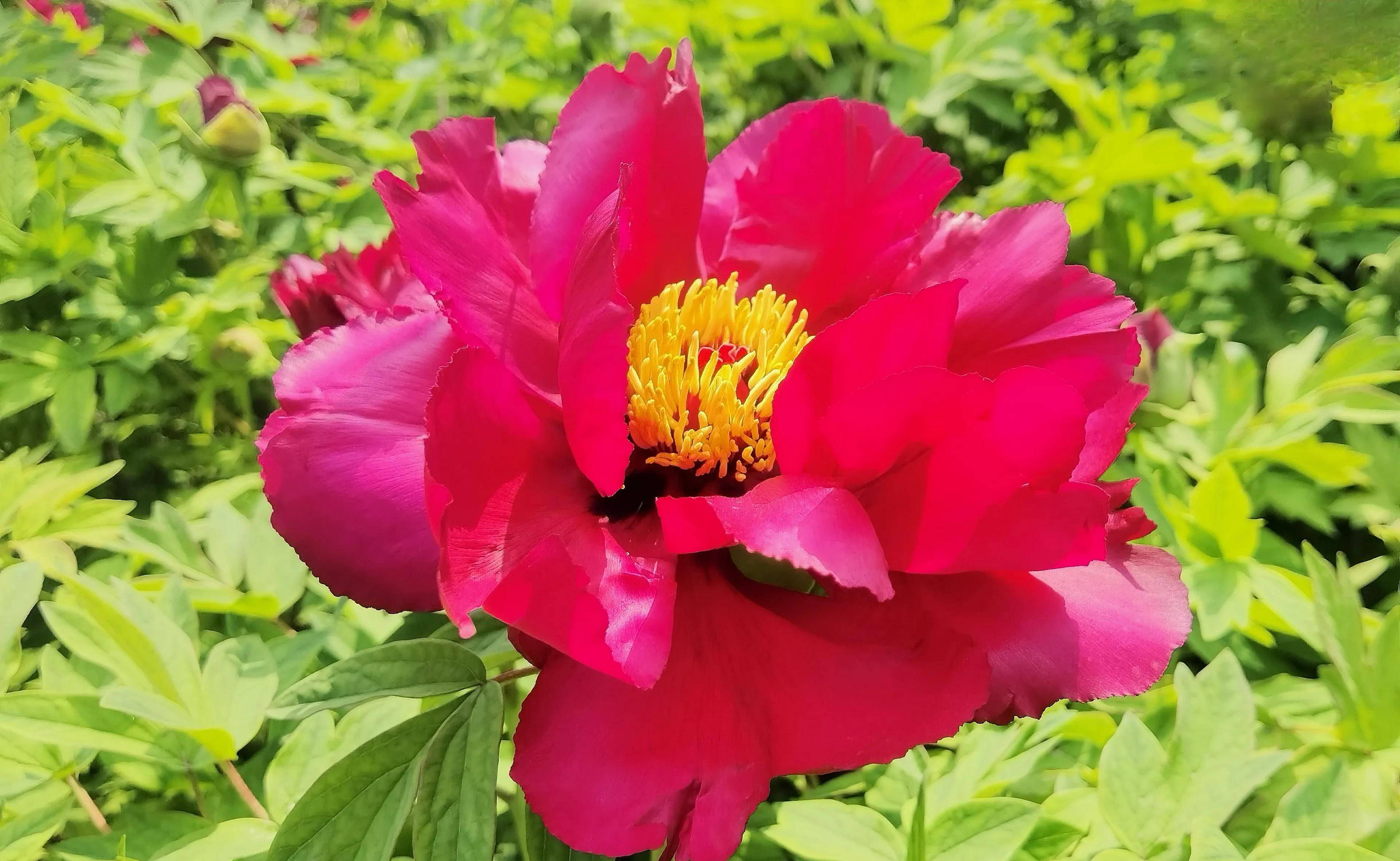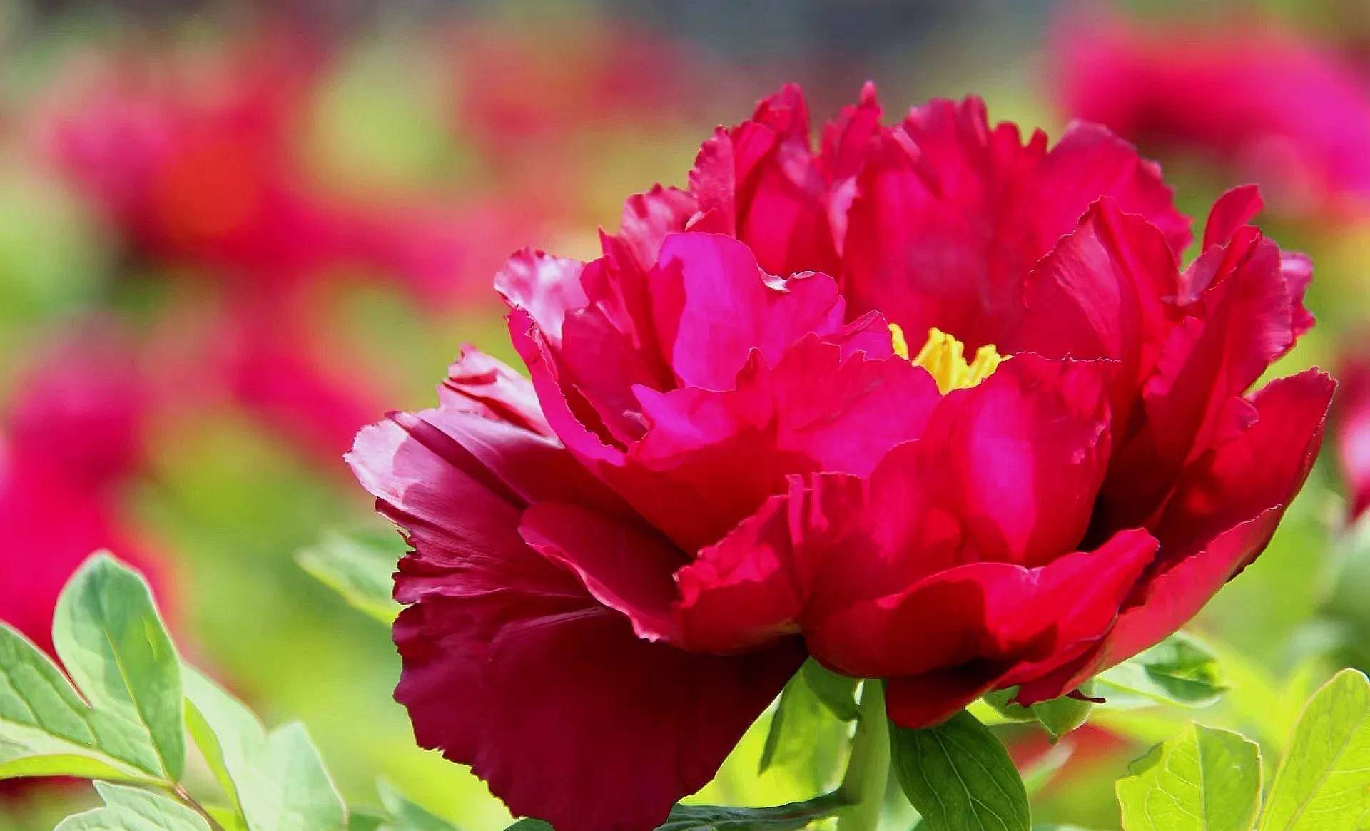 洛阳中国国花园内的一处黑海撒金牡丹,姐妹比容颜,看谁最黑红!
