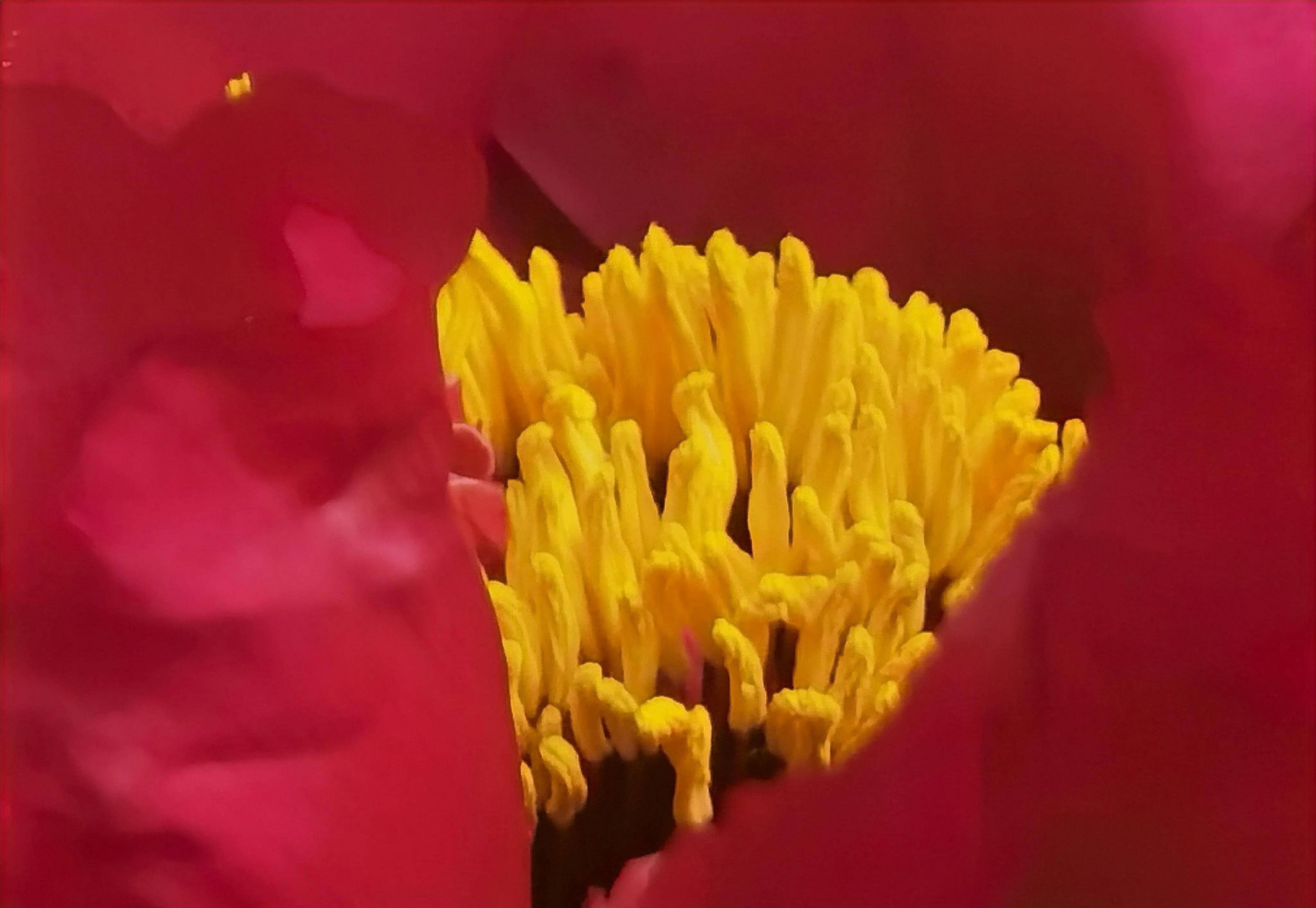洛阳中国国花园内的一处黑海撒金牡丹,笑容满面,金光四射!