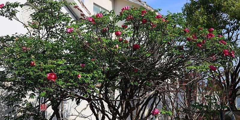 千年之后的今天,淮阳的荷花闻名全国,我们在陈州还能欣赏到牡丹的盛景吗?答案是肯定的。因为在这座小小的园林中,小编即有幸目睹了两株年代久远的牡丹之王,一株为红牡丹,高3.5米,冠幅6米,花开艳红亮丽,被称为牡丹王;