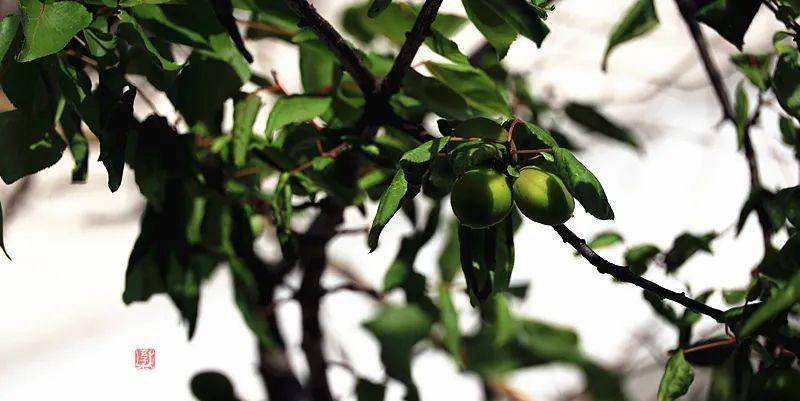 记得淮阳太昊陵景区内有棵柏抱檀,是柏树上面生长一棵檀树,目前已成为景区内的一道亮丽风景。而眼前这两棵亲如一家的树,也可以称其为“杏抱桃”吧。此时,枝叶茂盛的杏树上,已经结出清涩的果实,让人产生出“望梅止渴”的遐想,忍不住嘴角流涎。