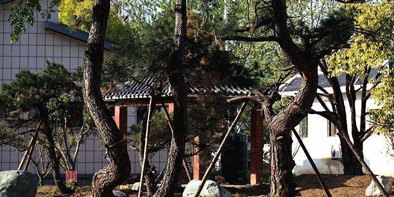 走进园林,几棵粗壮的名贵树木让人眼前一亮,据知情者介绍,园子里共有两棵杏树,一棵古梅树,一棵柿树,树围均需两人才能合抱;园内几棵落叶松的姿态也极具特点,这些树或举火烧天,或如来神掌,或披头散发,或盘虬卧龙,形态各异,令人惊叹。