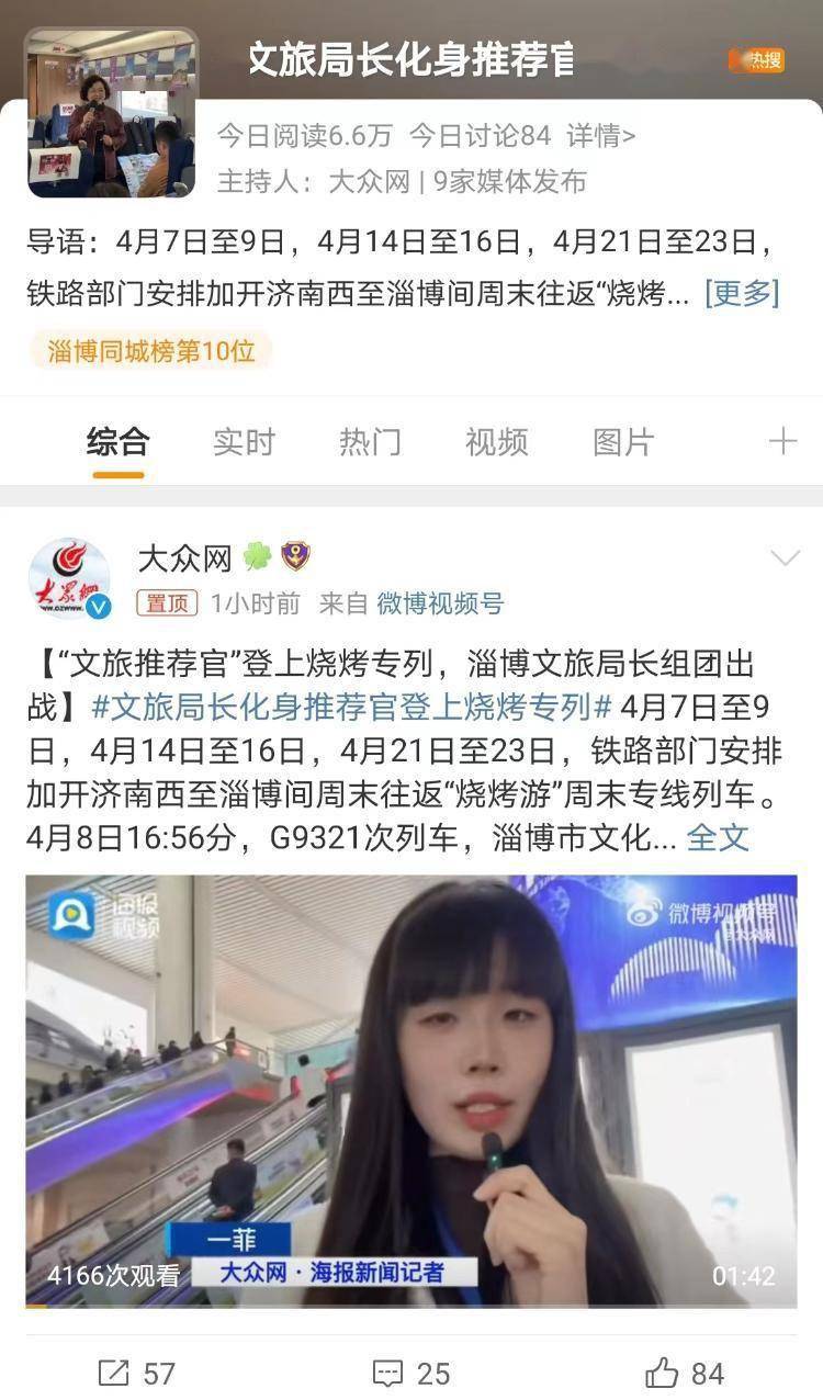 4月第一周,淄博烧烤深度体验频繁刷屏,验秤、免费住宿、文旅局长现身烧烤专列推介,相关话题持续火爆。清明节爬泰山、62岁独臂挑山工、年轻人夜市卖甜品暴赚等话题充分展示山东人朝气蓬勃的形象,引起网友热烈讨论。一起来围观新鲜出炉的山东热点话题吧!