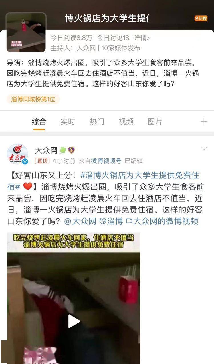#淄博火锅店为大学生提供免费住宿#