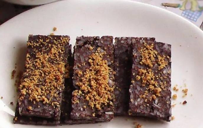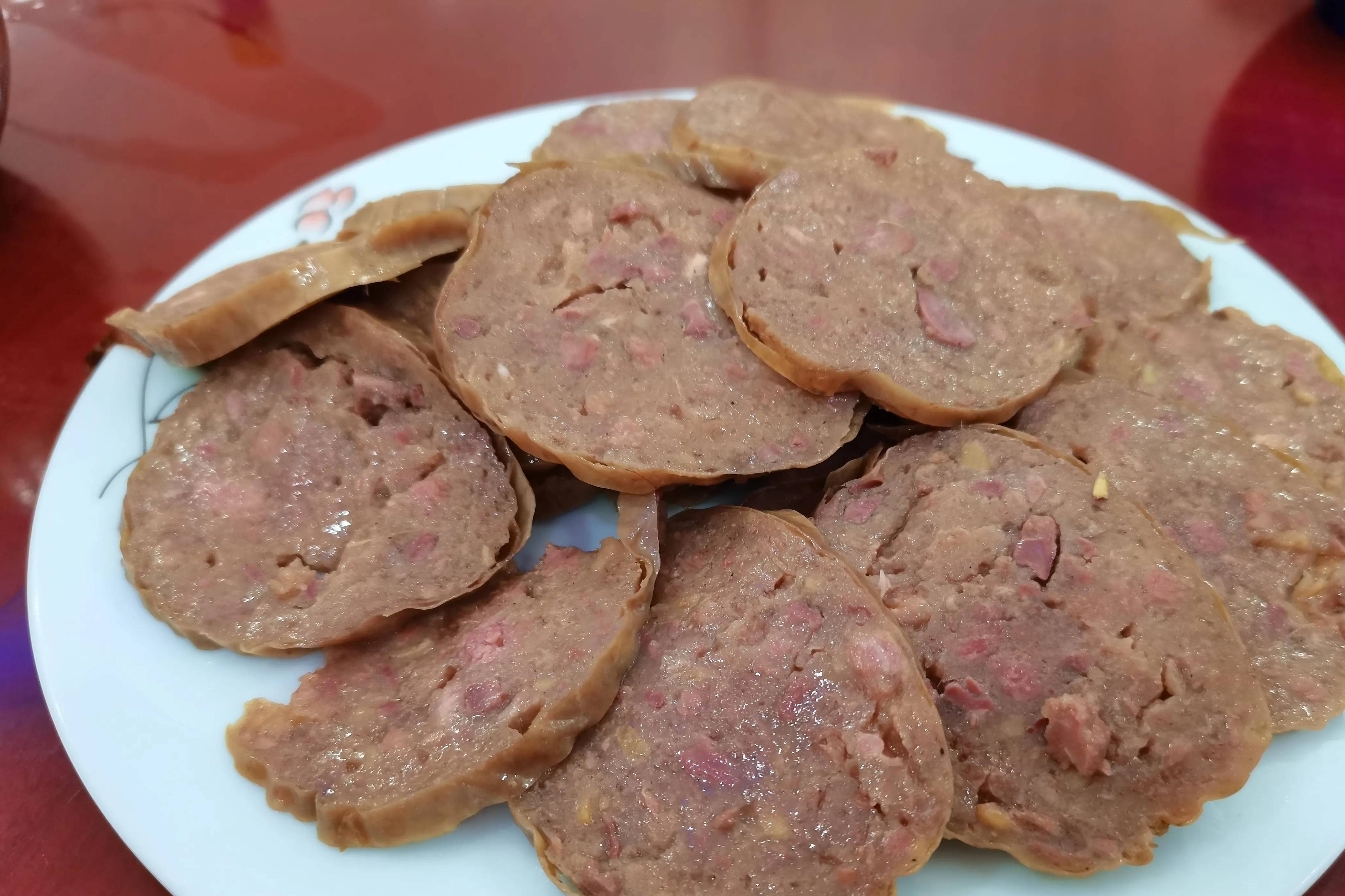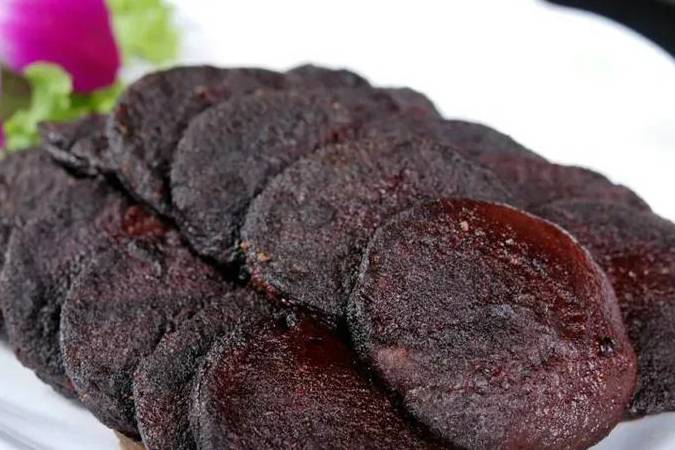 血糕主要原料是荞麦面,再加上猪血、羊血或牛血。在制作过程中,先将面团打成糊状,将已凉凉的生血用刀切成小块,放入面团中,再加入花椒、茴香和适量盐,拌匀,摊在笼子上,大火蒸熟。一锅,蒸一锅,再把血面饼再切成小块,就可以煎着吃了。