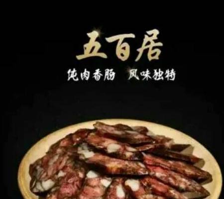 色泽纯正,条杆匀称,香味醇厚,肥瘦适宜,甜咸兼备,软滑利口,食而不腻,越嚼越香,回味悠长,独具一格。而且经久耐放,就是炎夏酷暑也不腐不蛀。五百居香肠制作讲究,选料严格精细,用六成猪的瘦肉,去骨去皮,肠衣不腐烂。