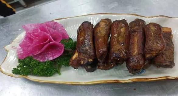 肠衣大排是一道扬州风味代表菜之一,选用鲜净猪排研制24小时,十几种名贵药材研制、晾晒,口感鲜香、味道可口,具有开胃养颜的作用,得到广大消费者的好评,是麗枫酒店特色菜之一。
