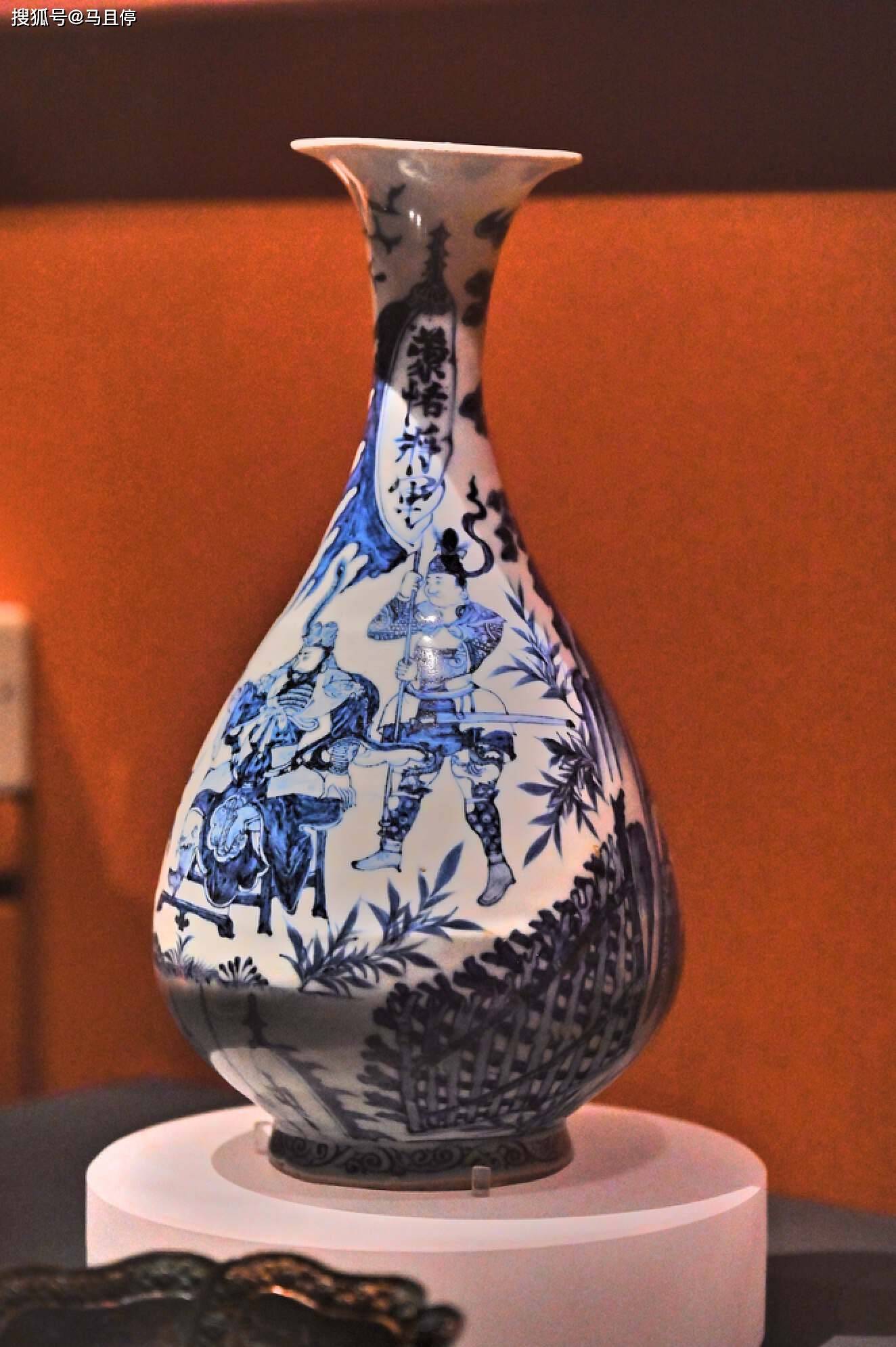 其二元代的青花人物故事玉壶春瓶表面上元杂剧图案,为我们很好地展示了元代戏曲以及服饰文化,很有意义; 其三唐代的长沙窑褐斑贴花舞蹈人物瓷壶则展示了长沙窑中模印贴花的工艺;