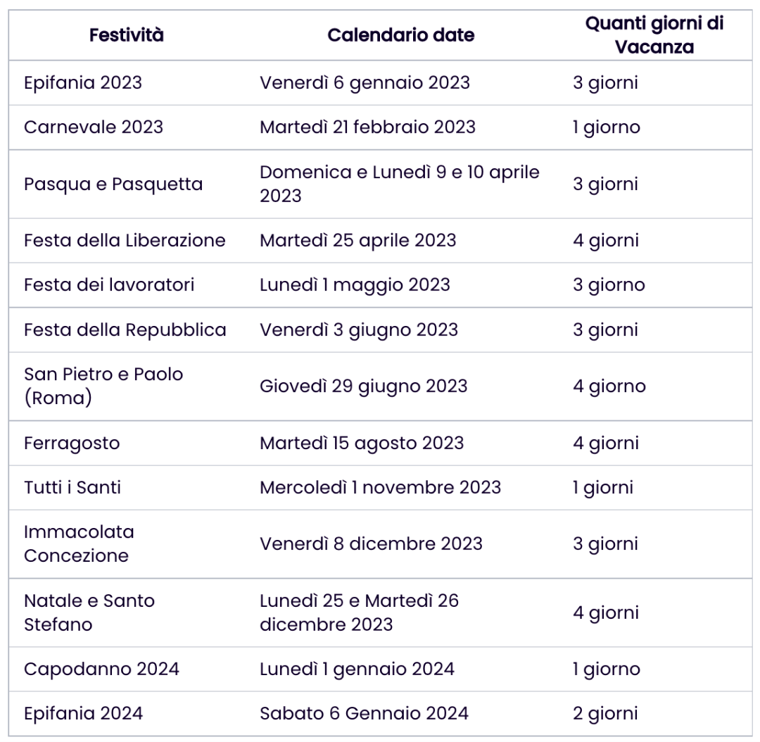 意大利2023全年的公共假期