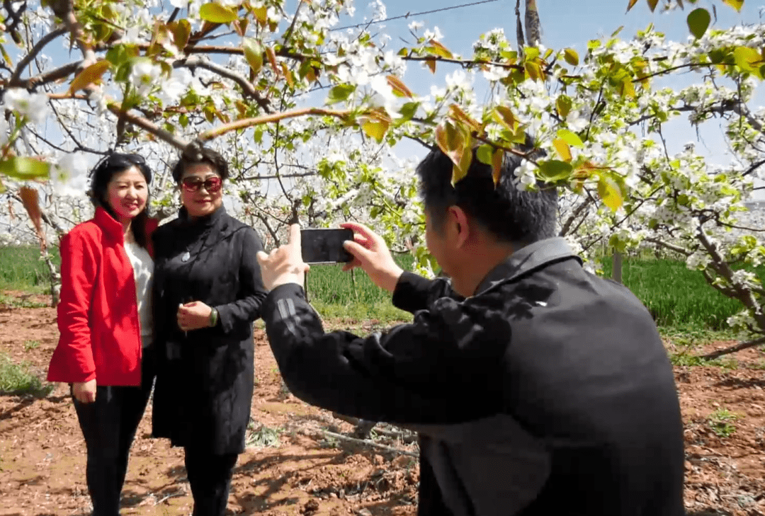 人们打卡美景的同时,带动了农家乐、民宿等一系列消费,“花经济”让“颜值”变产值。村民刘纪霞在南山办起了农家乐,一次性可接待近百人就餐。胶河社区村民刘纪霞说:“这几年我们胶河南山梨花的名气越来越大,很多游客到我们这里来赏花,来品尝我们的农家美食,特别是周六周天,一天得有二十多桌。”