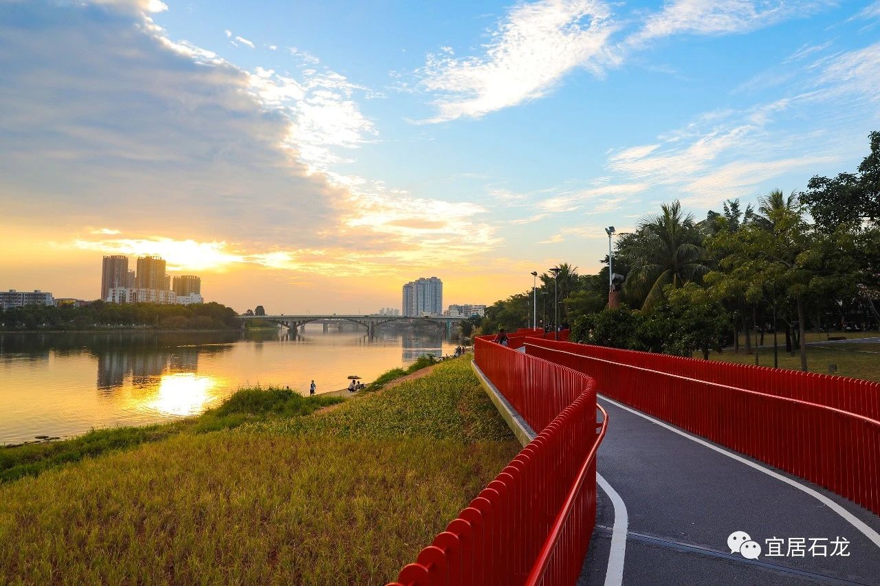沿着石龙东江南支流右岸碧道出发,途经石龙滨江路,偶遇那间会“开花”的房子,邂逅那片开在水杉林中的浪漫“花海”,在日出日落观景平台上追逐久违的阳光。