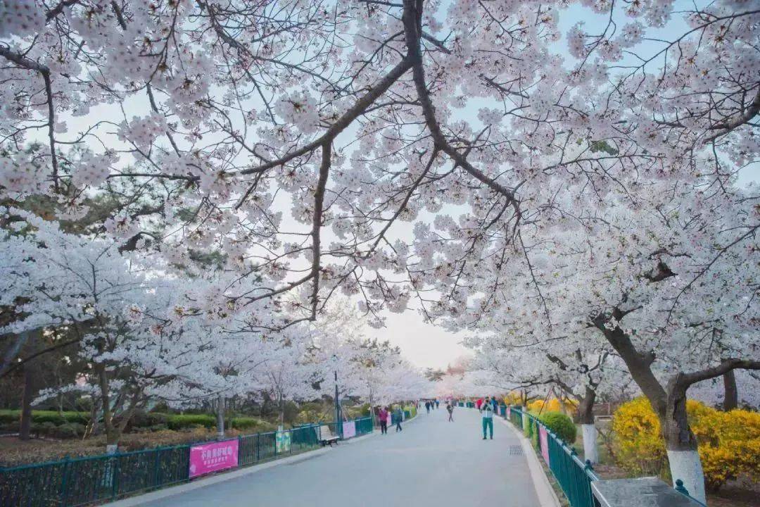 青岛中山公园是绝佳的赏樱胜地,花开之际,不管走到哪儿,都有樱花带来的甜蜜味道,整个公园都因樱花的盛开,而处处弥漫着浪漫的气息。